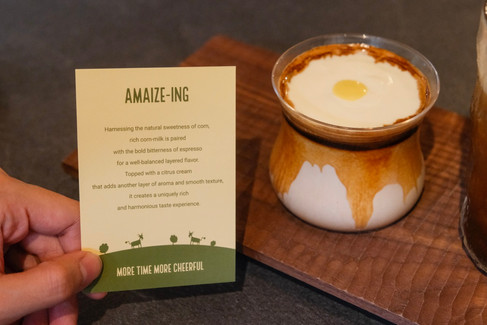We ordered their signature: Amaize-ing. And it sure lived up to its name — a layered drink of corn milk, a bold espresso shot, and housemade citrus cream with a bright yellow centre.
